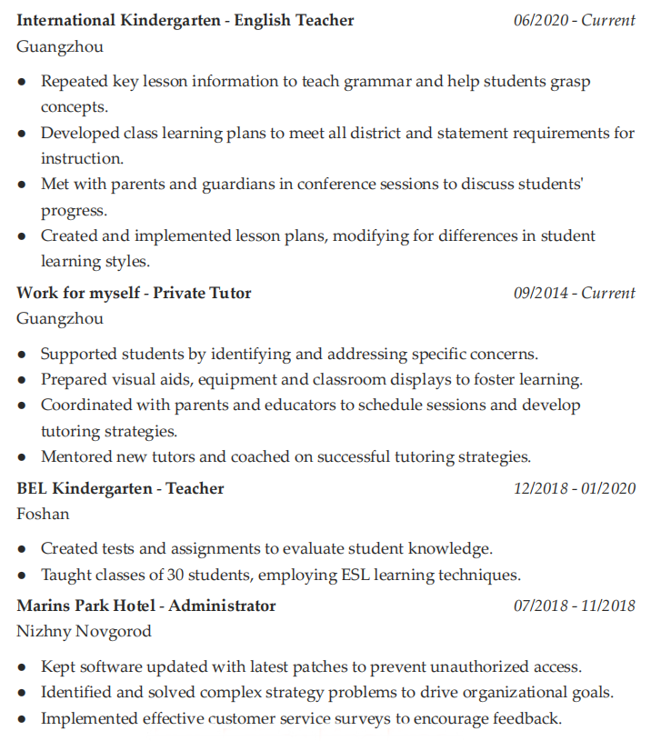 俄羅斯,目前在廣州,語言和外國(guó)研究本科,TESOL,3年教學(xué)經(jīng)驗(yàn),求職上海學(xué)校,25-30k,7月中旬-8月可上崗 |