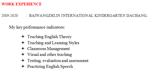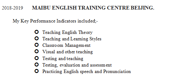 國籍: 津巴布韋 求職意向: 教師