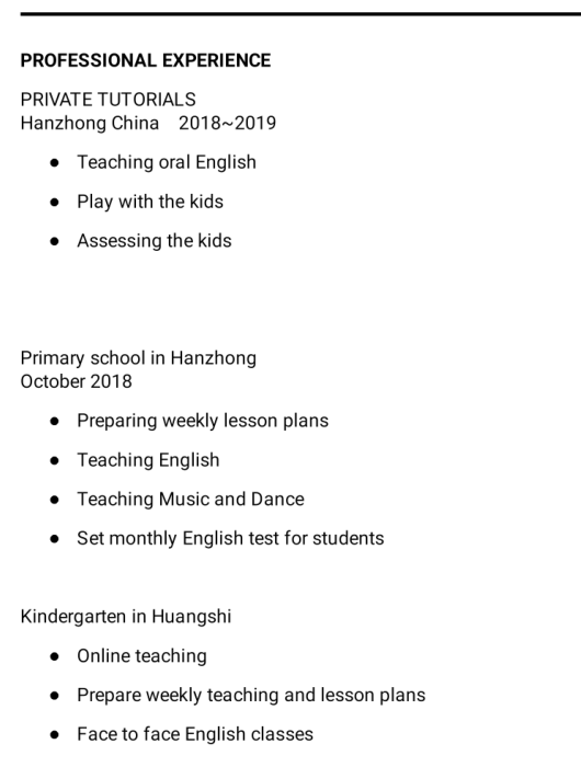 國(guó)籍: 津巴布韋 求職意向: 教師