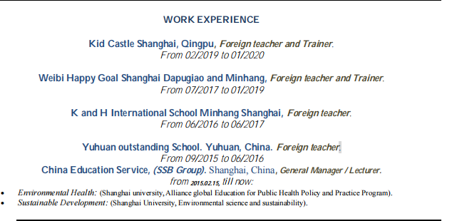 國(guó)籍: 津巴布韋 求職意向: 教師