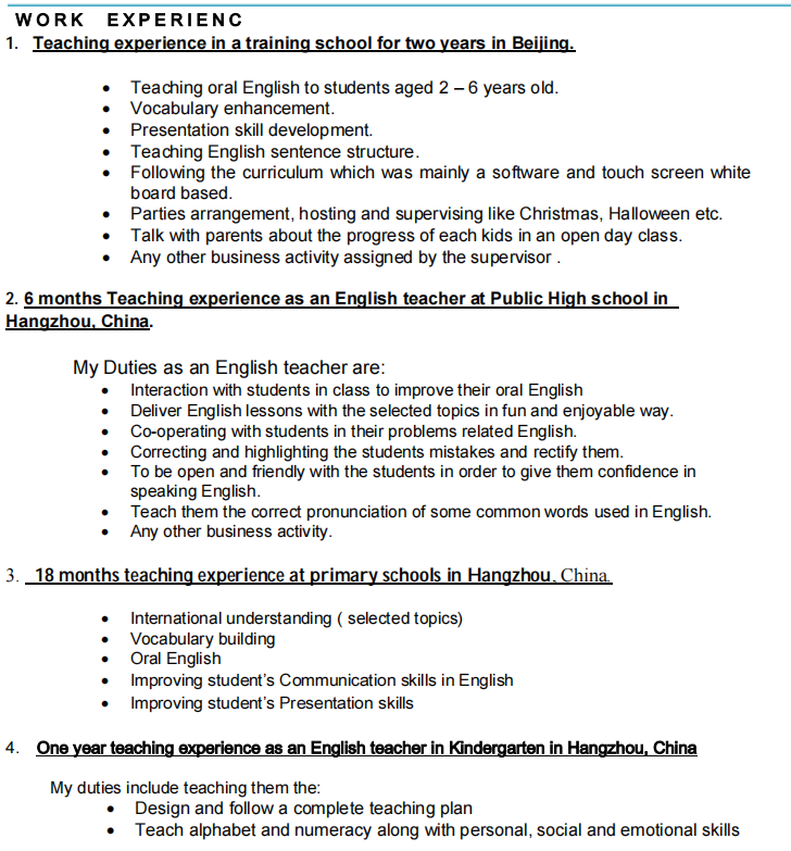 國(guó)籍: 摩洛哥 求職意向: 教師