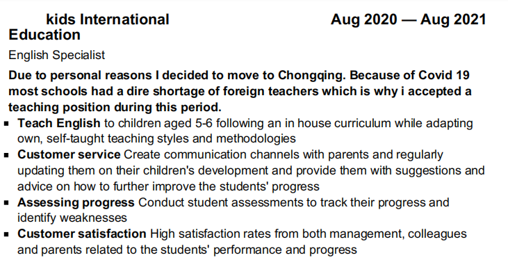 比利時(shí)在重慶,F(xiàn)Z學(xué)碩士,求職重慶管理職位和英語教師職位,目前在伊頓公學(xué)工作,26k,9月到崗, |
