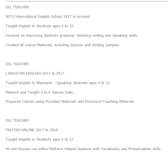 國籍: 其他 求職意向: 教師
