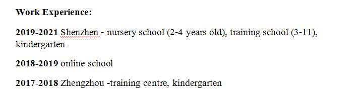 國(guó)籍: 烏克蘭 求職意向: 教師