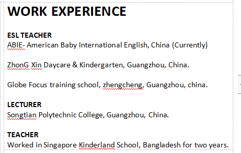 國籍: 津巴布韋 求職意向: 教師