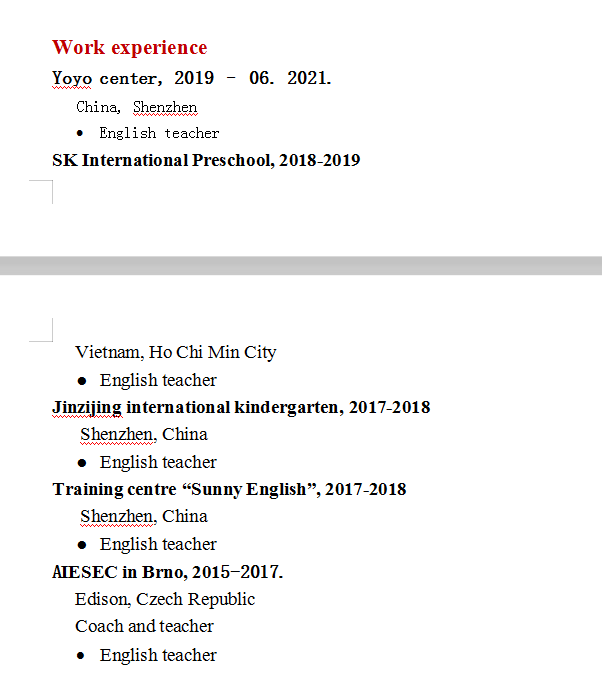 求職南山區(qū)幼兒園英語(yǔ)崗位,6年經(jīng)驗(yàn),3年中國(guó),3年海外 |