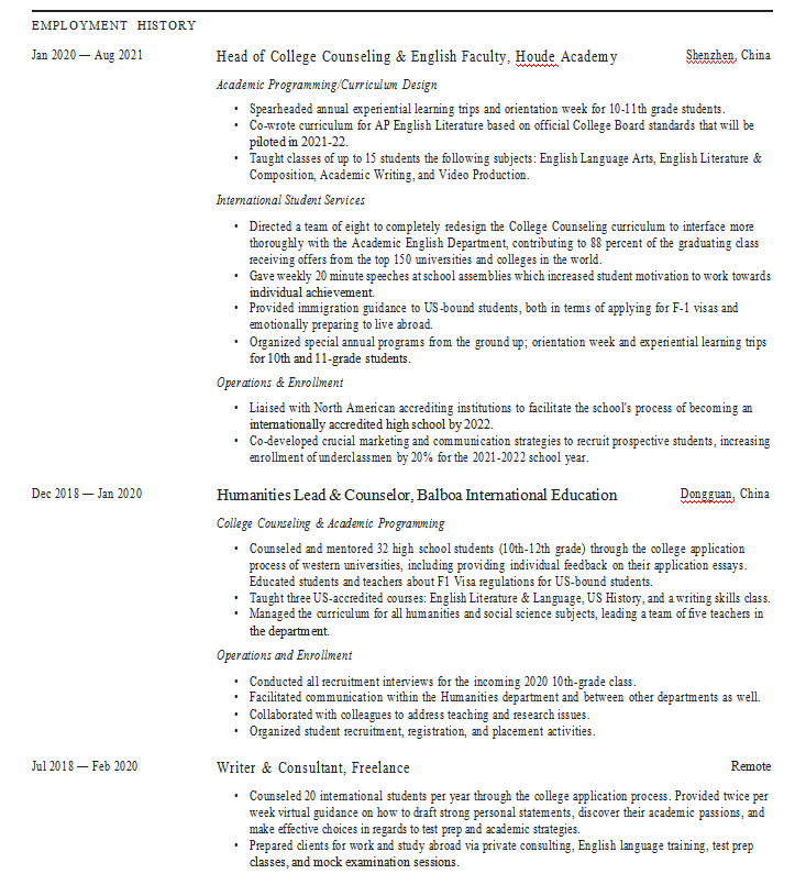 求職深圳、東莞國(guó)際學(xué)?;虼簖g學(xué)生培訓(xùn)學(xué)校,只教 14 - 18 歲的學(xué)生,也可以做大學(xué)輔導(dǎo)員,教育學(xué)碩士,8年經(jīng)驗(yàn),8月到崗,英語(yǔ)教師工簽 |
