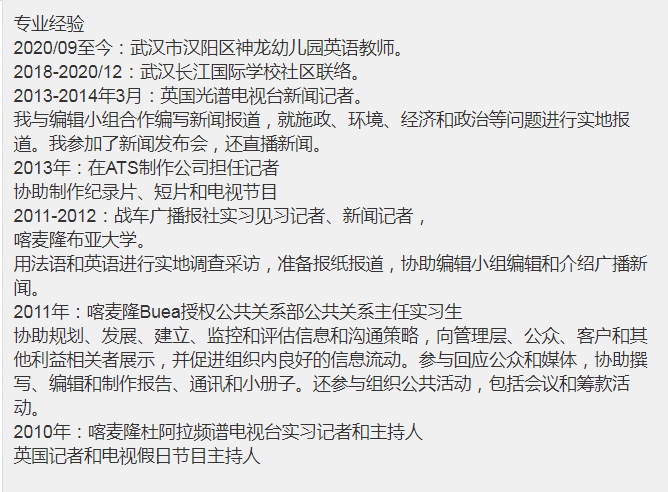 有TEFL證書,教學(xué)經(jīng)驗豐富。 |