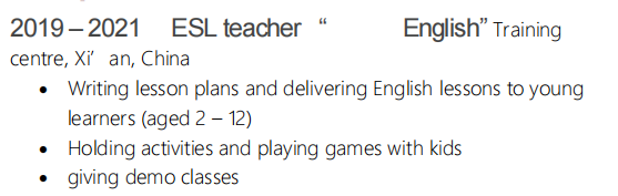 白俄羅斯在西安,市場經(jīng)理轉(zhuǎn)聘,英語翻譯本科,TEFL,2 年經(jīng)驗,求職沿海城市小學幼兒園,20k,9月1號上崗, |