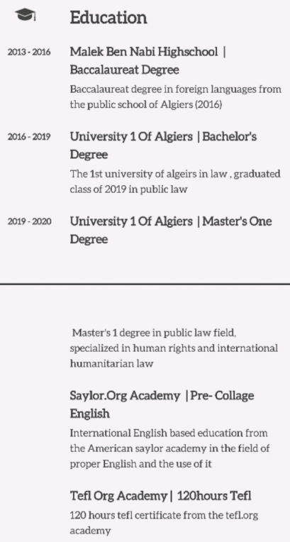 阿爾及利亞在本國(guó),法律碩士,TEFL,求職深圳廣州或其它城市,薪資協(xié)商,工簽資料齊全,盡快上崗,疫苗排隊(duì)中 |