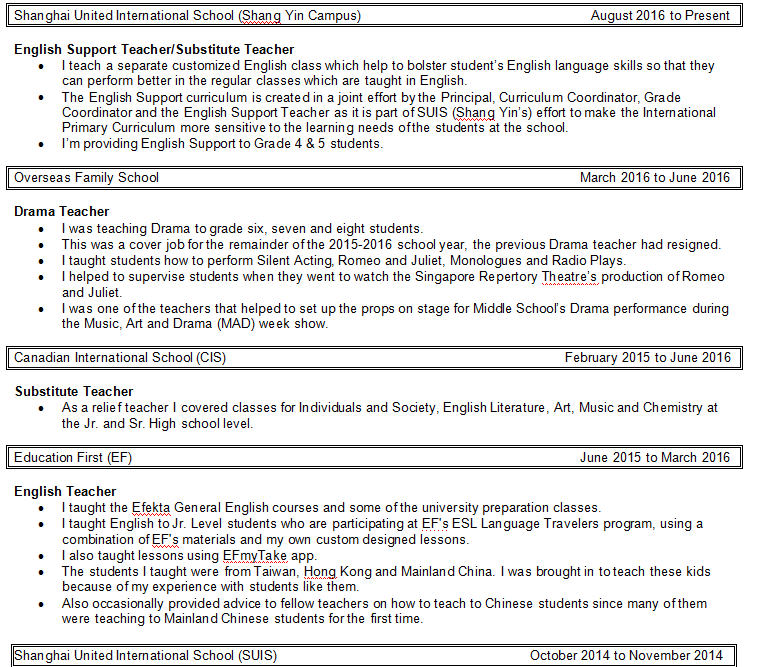國(guó)籍: 津巴布韋 求職意向: 教師