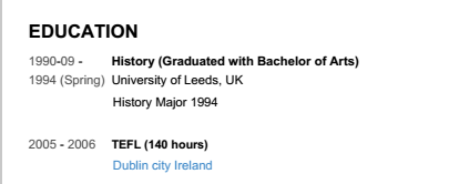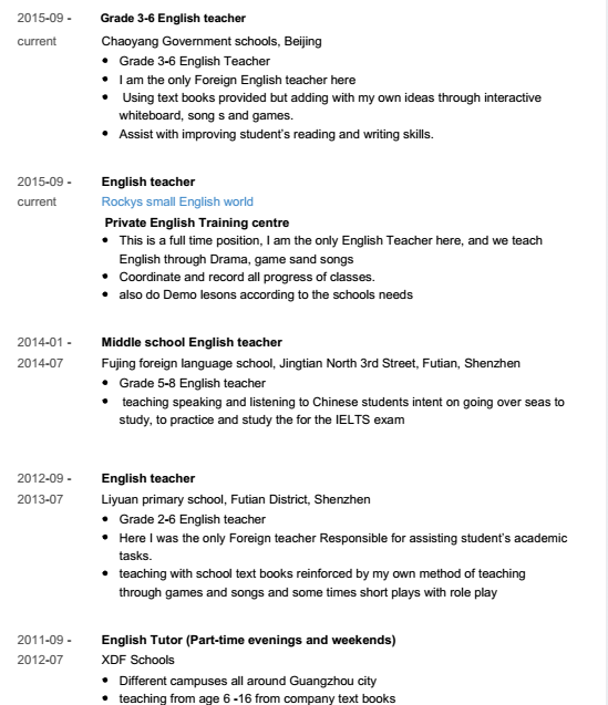 歷史專業(yè)本科,TEFL,多年教學(xué)經(jīng)驗(yàn) |