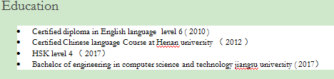 國(guó)籍: 孟加拉 求職意向: 教師
