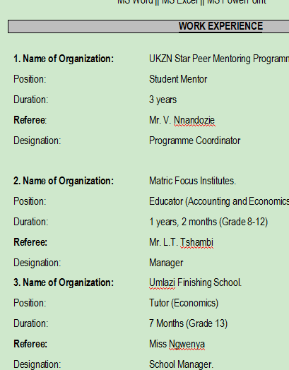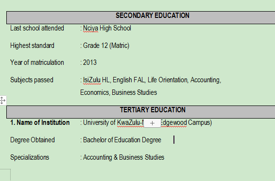 國(guó)籍: 津巴布韋 求職意向: 教師