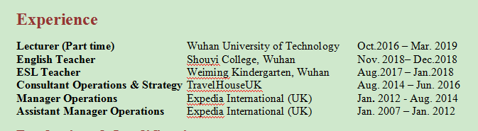 國(guó)籍: 津巴布韋 求職意向: 教師
