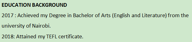 國(guó)籍: 津巴布韋 求職意向: 教師