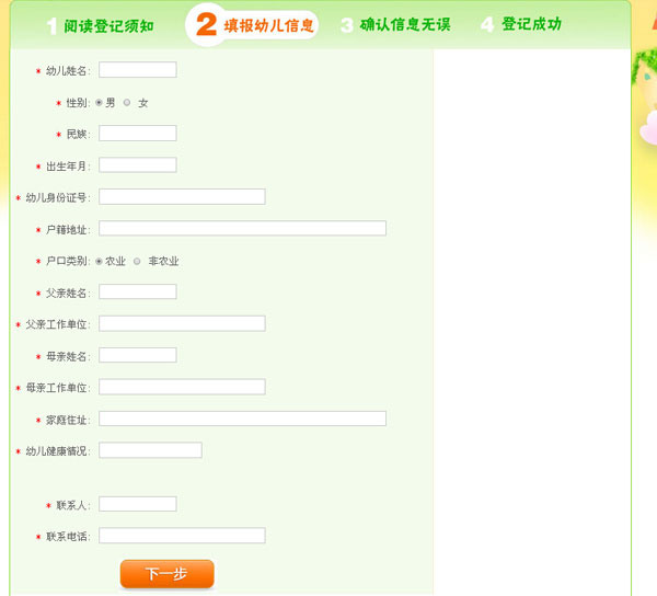 點擊下一步后可以填報幼兒信息,進行報名登記